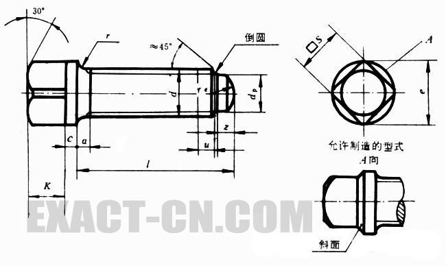 方头长圆柱球面端紧定螺钉(GB/T 83-1988)